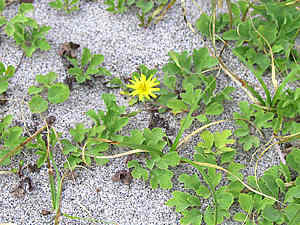 別名ハマイチョウ。葉はイチョウの葉に似ている。地下茎は白くて長い。葉は砂をかぶっても、すぐに茎をのばして砂の上に出る。4〜10月にかけてタンポポに似た黄色い花が咲く。葉は苦い(ハマニガナ=浜苦菜)。