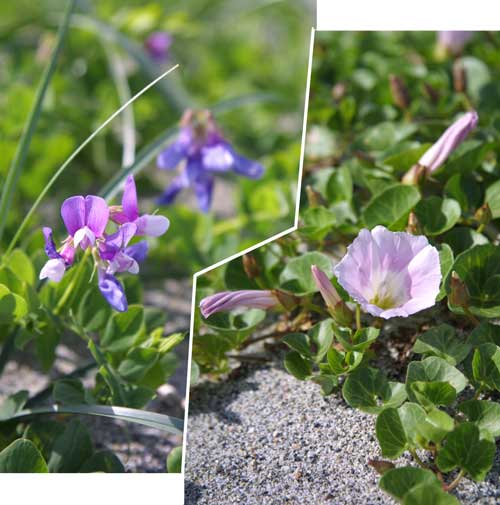 黒部川の河口に行ってみると、ハマリンドウやハマヒルガオが花を付けていました。河口だけでなく、荒俣海岸や石田海岸にもこれら以外のものも含めた海浜植物がありますよ。