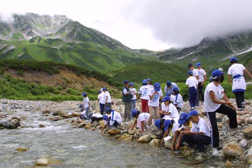 8月6日、くろべ水の少年団で立山に行ってきた。黒部川の源流部である雲の平などに行くに相当大変だが、常願寺川の源流部は室堂平にあるので簡単に行くことができる。ここでは源流部がどのようなものかを見て、水温などを測定した。後に見えるのが雄山だ。