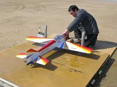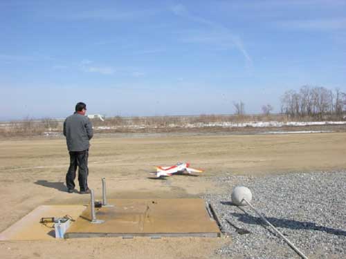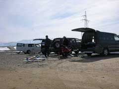 河川敷のあちこちに残る残雪や吹き溜まりの雪面を四駆の愛車で切り開いて、今年のフライト一番乗りを果たしたよろこびでいっぱいの様子だ。愛機を並べ自慢話!?をしているのか
