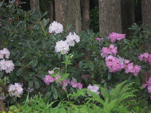 国道8号線を黒部川を越え新潟県との県境朝日町の境川を車を走らせます。大平集落の側にある橋から新潟県の上路に向かいます、橋から10分ほどで山姥と金太郎伝説の里上路に着きます。この里にも過疎化が押し寄せ集落には人の気配がなくひっそりとしています。里には金太郎と山姥の伝説にまつわる、いろんな遺物があります。金太郎の手まり石、藤つるのブランコなどなどです。部落に古式ゆかしい十二社神社があります。境内の参路には散り始めた桜の花が道を染め、周囲には白とピンクの石楠花が満開です。この集落の方々の家にも石楠花が咲いています。この神社から約200m程の?谷の側にパイプからドウドウと湧水が出ています。この水は飲むと病みつきになる旨い水です。 2010年5月12日 地域学芸員 K.K |