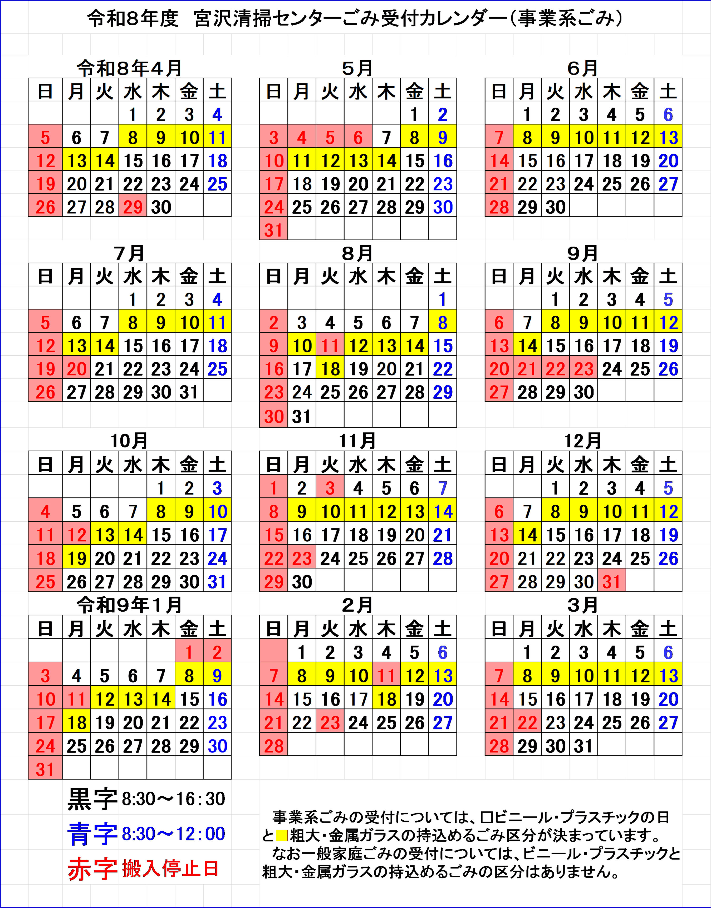 ※大量に持ち込む場合等、詳しくは宮沢清掃センターへお問い合わせください。